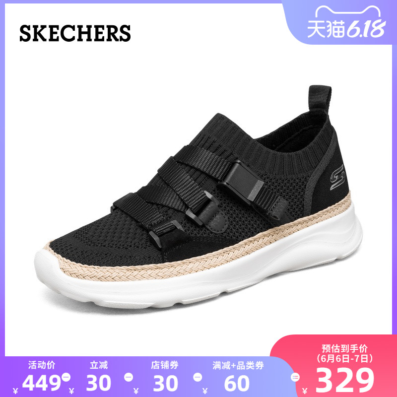 skechers官方旗舰店Skechers斯凯奇春夏一脚蹬鞋女士天使鞋小白鞋休闲鞋117014融入草编工艺,丰富细节层次感